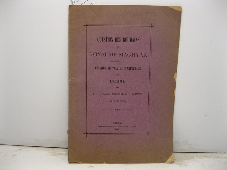 Question des Roumains du Royaume Maghyar presentee au congres de paix et d'arbitrage de Berne par les etudiants universitaires roumains - 22 Aout 1892