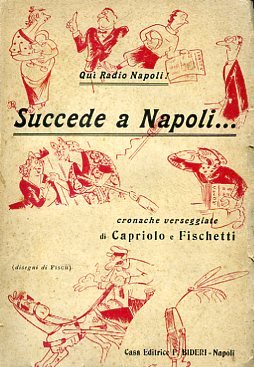 In-8°, pp. 216, brossura editoriale con caricature in rosso di Fisch. Illustrazioni caricaturali in b.n. n.t. dello stesso Fisch. Fioriture alla brossura. Una dedica del tempo al titolo. Buona copia intonsa. Prima edizione. Cronache in versi ispirati alla vita napoletana frutto della trasmissione radiofonica 'Succede a Napoli', al tempo assai popolare. Fra queste cronache poetiche in dialetto napoletano ve ne sono di dedicate al gioco del lotto, al miracolo di San Gennaro, a Salvatore Giuliano, alla Nunziatella, ecc.