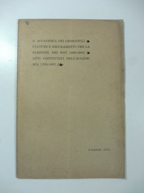 R. Accademia dei Georgofili. Statuto e regolamento per la elezione dei soci (1899-1900). Atti costitutivi dell'Accademia (1753-1897)