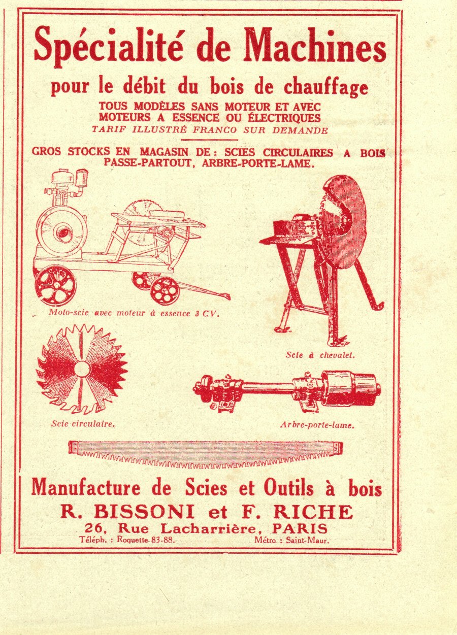 R. Bissoni et F. Riche. Manufacture des scies et outils a bois. Advertising 1926