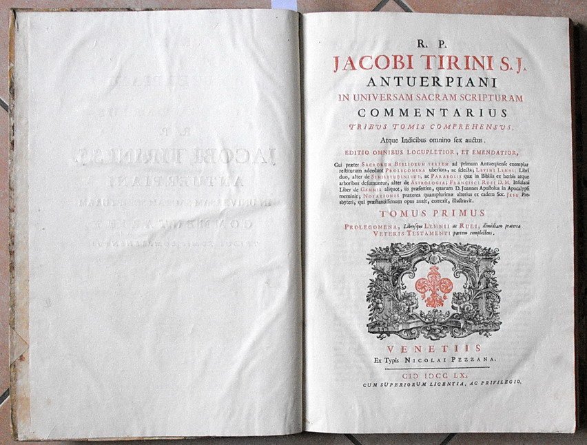 R. P. JACOBI TIRINI S.J. ANTUERPIANI in UNIVERSAM SACRAM SCRIPTURAM - COMMENTARIUS tribus Tomis Comprehensus, Atque Indicibus omnino fex auctus. (tomi I, II e III)