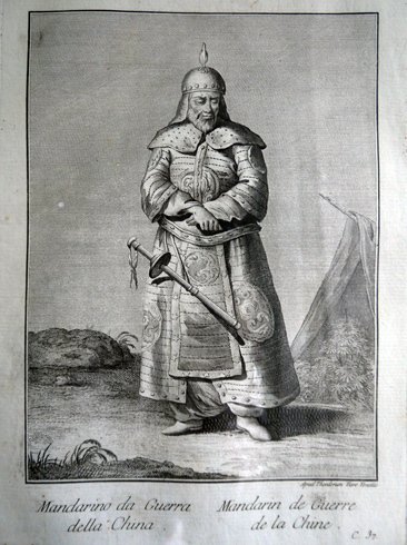 Racçolta di Stampe che representano Figure e Abiti di varie Nazione (1783-1791). B.37: Mandarino da Guerra della China.