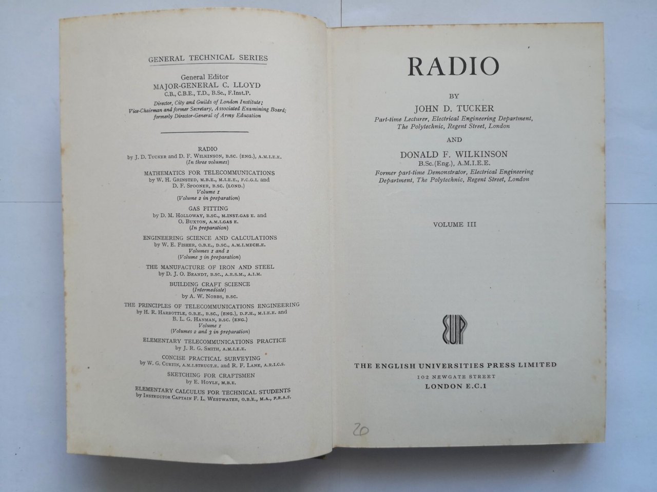 RADIO di Tucker e Wilkinson volume 3 1958 The English Universities Libro MANUALE