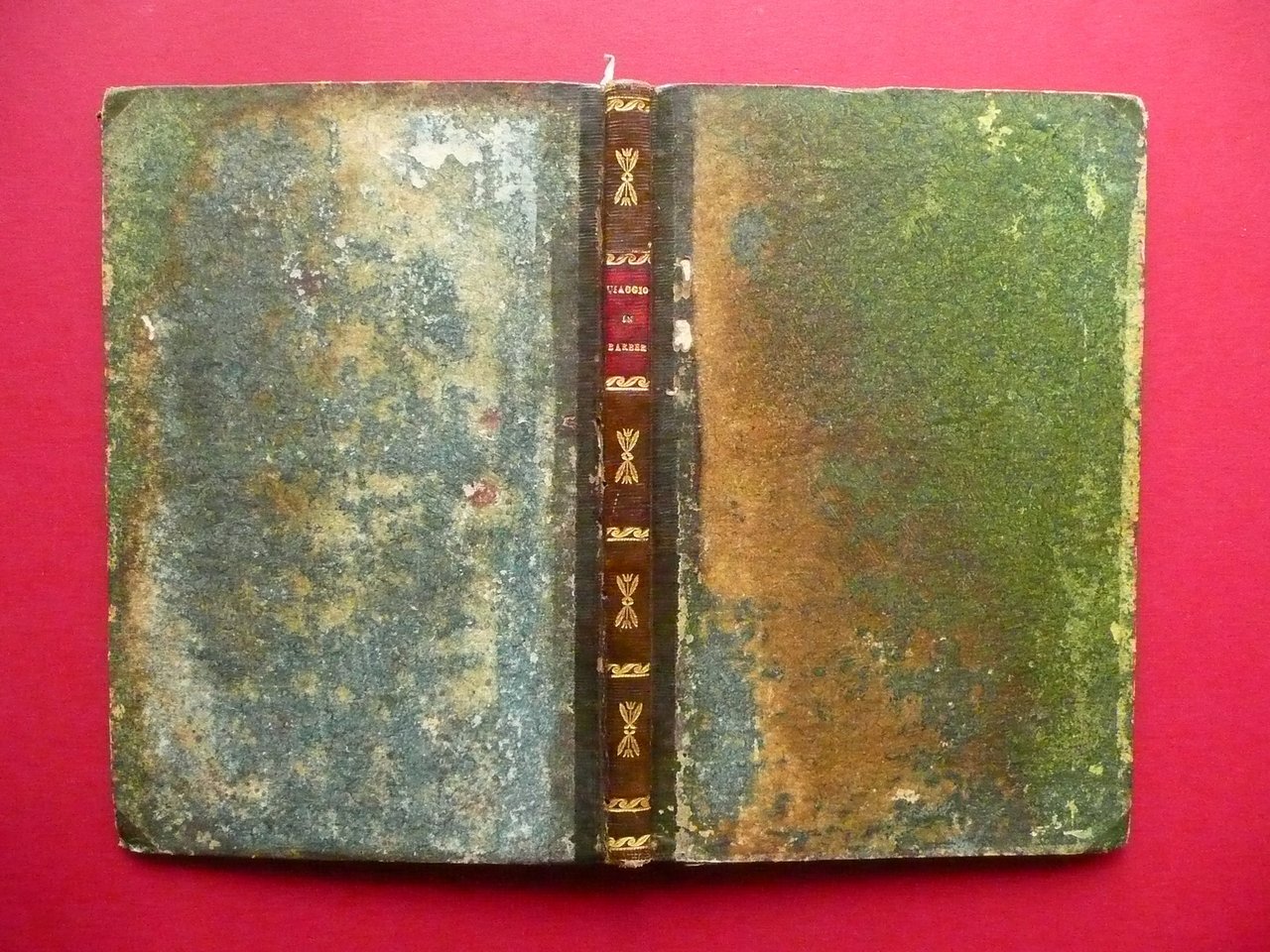 Ragguaglio del viaggio compendioso di un dilettante antiquario sorpreso da' corsari condotto in Barberia e felicemente rimpatriato a Luigi Settala parte I Sonzogno, Milano 1805; cm 21x14; pp. 140; legatura in mezza pelle ed. con titolo e fregi impressi in oro al dorso. Prima bianca con nome del precedente proprietario. Condizioni di conservazione Esemplare in buono stato con tracce d'uso, coperta con alcune piccole mancanze e abrasioni prevalentemente ai piatti; ombra di gora di vecchia umidità che interessa la totalità dell'esemplare, ma che non compromette la lettura del testo (vedi foto). Mancanza del ritratto in antiporta. Solo prima parte. Mancanza del ritratto in antiporta. SETT197.L19034 N