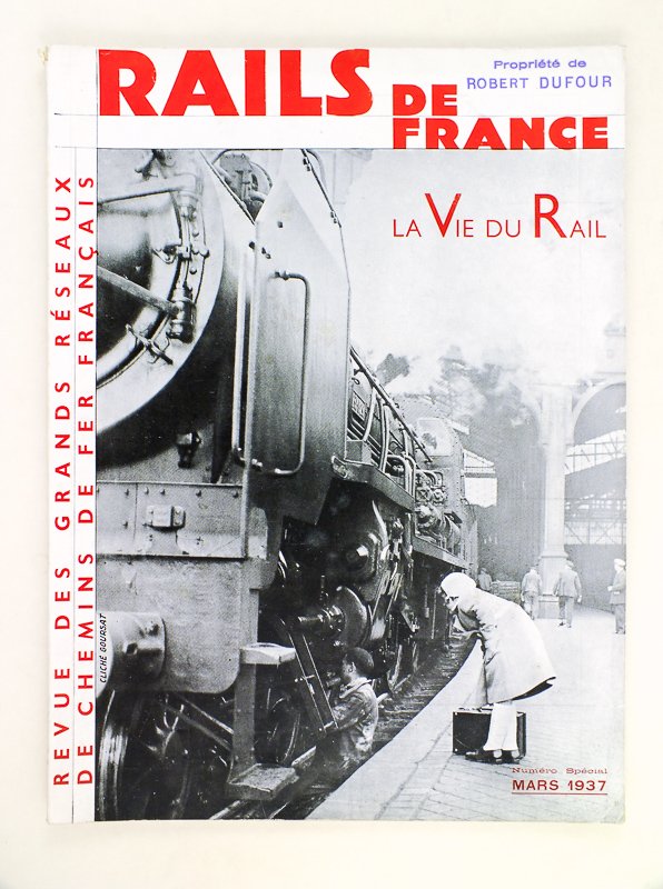 1 vol. grand in-4 br., Rails de France. La Vie du Rail. Numéro Spécial Mars 1937 Revue des Grands Réseaux de Chemins de Fer Français, 104 pp. [ Contient : Préface d'Henry-Gréard ; Abel Bonnard : Au Seuil du départ ; Francis de Miomandre : On prépare votre train ; Charles Fabry : Les coulisses d'une gare ; A. Caquot : Muscles d'acier ; Daniel-Rops : Voyage avec le mécanicien ; Lucie Delarue-Mardrus : Ceux qui vous attendent ] Bon état pour cet exemplaire imprimé sur papier courant (nous disposons également d'un exemplaire du même numéro imprimé sur un papier plus fort).