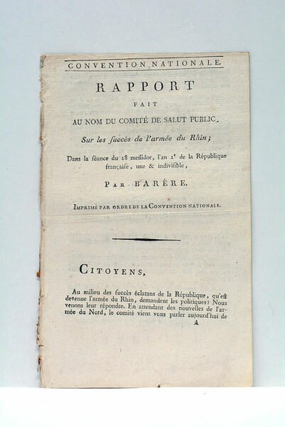 Rapport fait au nom du Comité de Salut public, sur les succès de l'armée du Rhin; Dans la séance du 28 messidor, l'an 2e de la République française, une et indivisible.