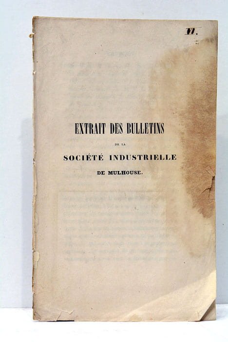 14 pages. (21x13 Cm). Déreié. Rousseurs. Tiré à part de la "Société Industrielle de Mulhouse". 1 planche dépliante. Tache marginale.