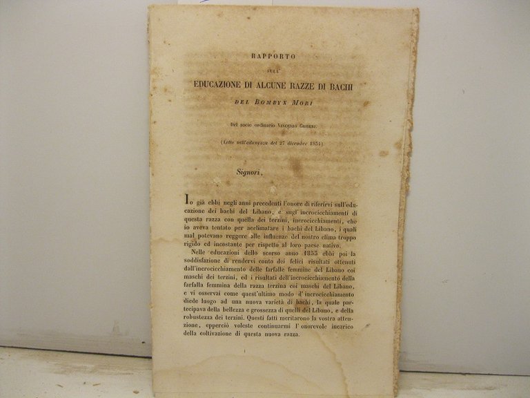 Rapporto sull'educazione di alcune razze di bachi del bombyx mori (letto nell'adunanza del 27 dicembre 1854)