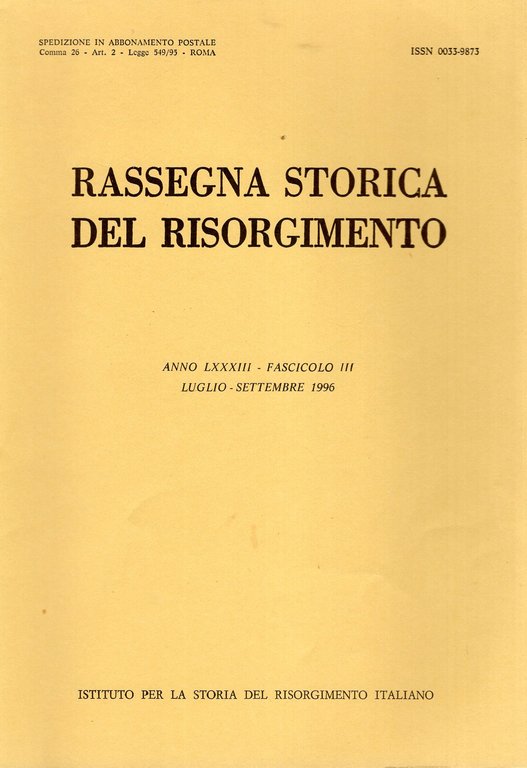 Rassegna storica del Risorgimento Anno LXXXIII Fascicolo III LUG. - SETT. 1996