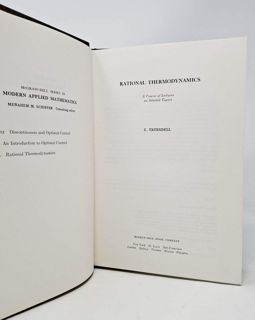 Collana: Series in modern applied mathematics. Lingua del testo: inglese. Pagine: IX + 208. Formato: 16 x 23,5 cm circa. Stato di conservazione: strappetti sul margine superiore e inferiore della sovraccoperta con qualche mancanza, un exlibris con indicazione del nome a matita di un noto matematico ma volume in ottimo stato. Privo di annotazioni, sottolineature o altri segni nel testo. Copertina cartonata rigida intelata con sovraccoperta. Indice: Preface, 1- Thermodynamics of homogeneous processes, 2- Internal Dissipation, 3- Coleman's Theorem, 4- Wave propagation in dissipative materials, 5- Thermodynamics of diffusion, 6- Thermodynamics of chemical reactions, 7- The onsager relations, 8- The Maxwell-Boltmann equation as a constitutive equation of continuum mechanics, 9- The trend to equilibrium according to the kinetic theory of gases, 10- Kinetic and caloric dissipation in simple shearing of a Maxwellian gas.