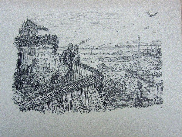 6 S., 1Bl., 13 Tafeln. Gr.-Fol., quer. Folge von 13 Orig.-Lithographien von Akfred Kubin. Illustr. Or.-Hlwd.-Mappe. Druckvermerk von Kubin signiert. - Raabe 281, Marks A. 86, Horodisch 229. - Otto Stoessel (1875 - 1936), 1906 - 11 Mitarbeiter der `Fackel`; seit 1919 Theaterkritiker der `Wiener Zeitung`; Essayist, Erzähler und Lyriker; Titel der einzelnen Blätter: 1. Der Gutsherr; 2. Circe; 3. Hexenküche; 4. Verliebte Zauberer; 5. Behemoth; 6. Ein Wirtshaus am Donaustrand; 7. Schloss Zwickledt; 8. Vampyre; 9. Leviathan; 10. Der Fang; 11. Kriegskameraden; 12. Der Mühlteich; 13. Die Müllerin. - Die Blätter wurden auf der Steindruckpresse von Otto Birkholz, Berlin, abgezogen. - Einbandentwurf von Alfred Kubin. - The indicated shipping costs refer to books weighing up to one kilogram. - Bücher, die schwerer als ein Kilogramm oder größer als 35 x 25 cm sind, werden als Paket verschickt und kosten innerhalb Deutschlands bis zu zwei Kilogramm 6 Euro, darüber hinaus 7 Euro Porto. -