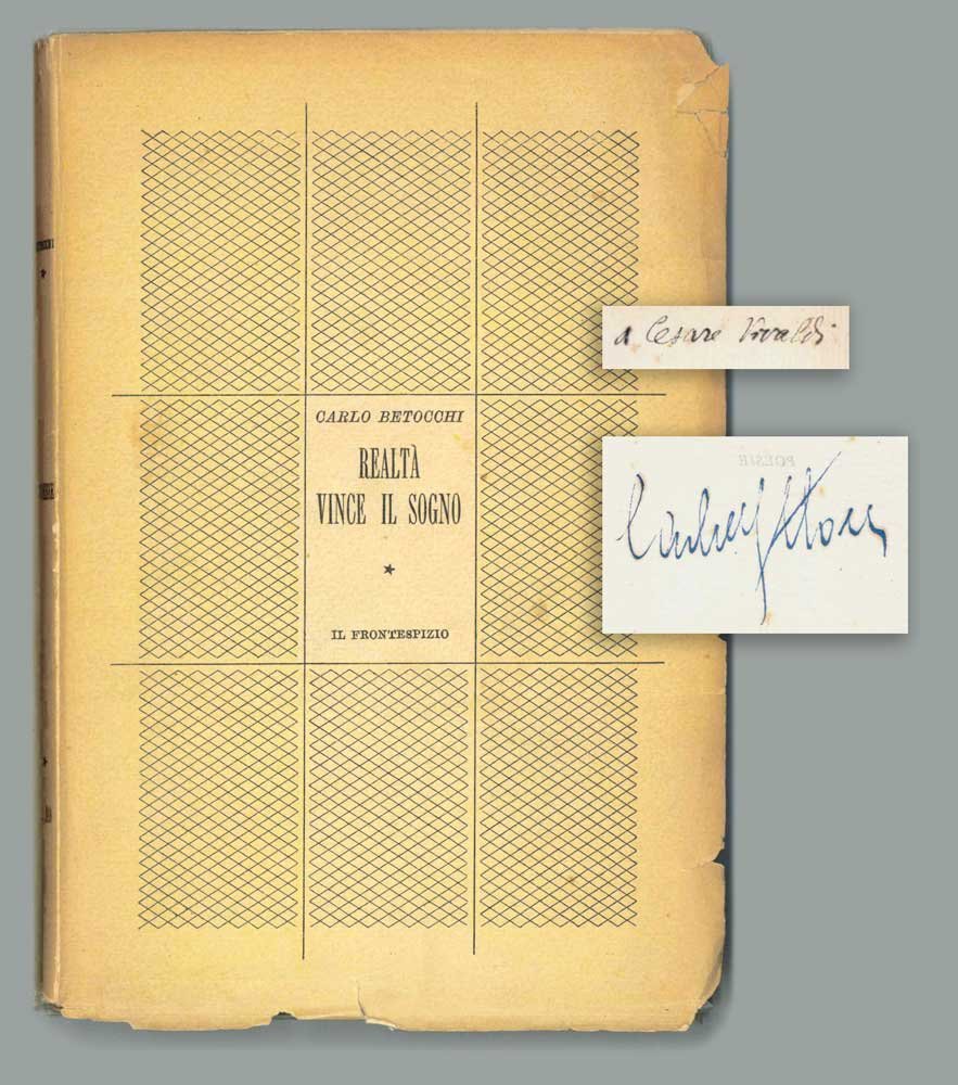 LIBROPrima edizione.CON AUTOGRAFO.Esemplare numero 311 di una tiratura non dichiarata, ben completo della firma autografa dell’autore al colophon, e pregiato inoltre da un invio autografo, non firmato, alla prima carta, «a Cesare Vivaldi» (noto poeta novecentesco); invio sormontato da una firma di possesso non leggibile. Più che buon esemplare (minime sfrangiature ai bordi della copertina, con una piccola riparazione antica al verso; lieve brunitura alla copertina; inevitabili fisiologiche fioriture dovute alla qualità della carta).Opera prima e contemporaneamente esordio delle edizioni del «Frontespizio», curate da Piero Bargellini. Uno dei libri più importanti della poesia italiana anni trenta, decennio che vede il fiorire di tanti nostri poeti che costituiranno l’ossatura del Novecento letterario italiano: Alfonso Gatto, Salvatore Quasimodo, Leonardo Sinisgalli, Mario Luzi.