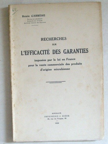 Recherches sur l'efficacité des garanties imposées par la loi en France pour la vente commerciale des produits d'origine microbienne. [ Livre dédicacé par l'auteur ]