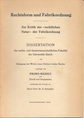 Rechtsform und Fabrikordnung. Zur kritik der "rechtlichen Natur" der Fabrikordnung. Dissertation der rechts- und staatswissenschaftlichen Fakultät der Universität Zürich.