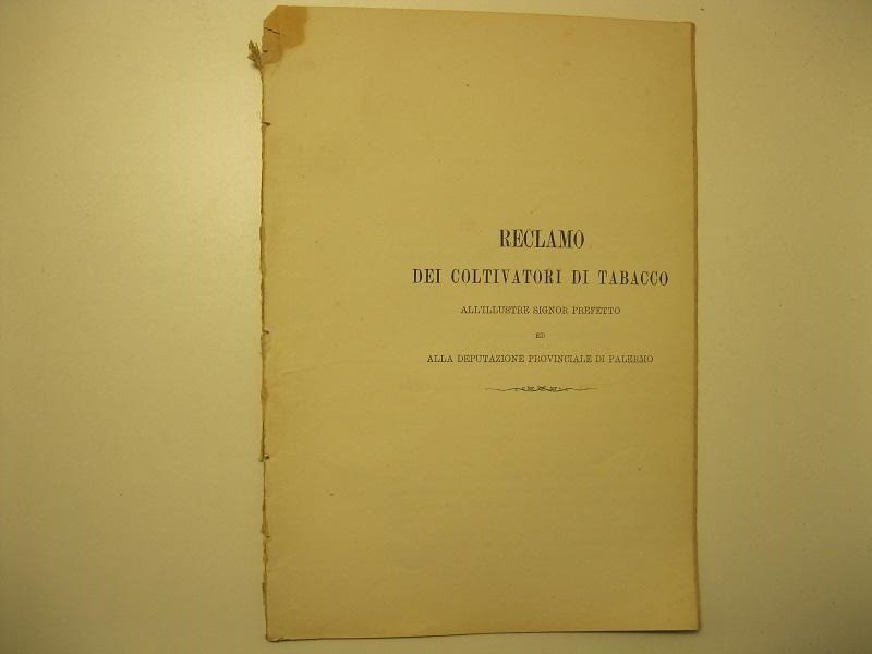 Reclamo dei coltivatori di tabacco all'illustre signor prefetto ed alla deputazione provinciale di Palermo