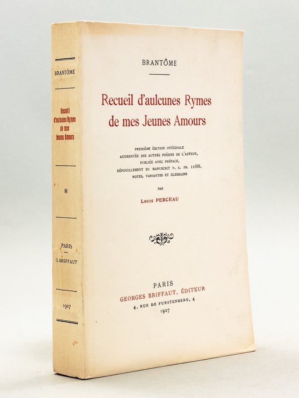 Un des 100 exemplaires sur papier de Rives numérotés (n°59), première édition intégrale augmentée avec les autres poésies de l'auteur, publiée avec préface, dépouillement du manuscrit 11688, notes, variantes et glossaire par Louis Perceau, 1 vol. in-8 br., Georges Briffaut, Paris, 1927, 321 pp. Bon état (qq. rouss. sur tranches, parfait état par ailleurs) pour cet exemplaire du tirage de tête numéroté.