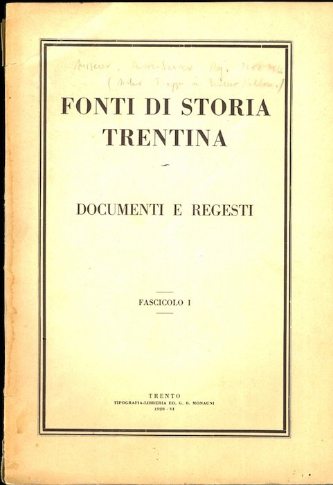 - Fonti di storia trentina, documenti e regesti, fascicolo I.