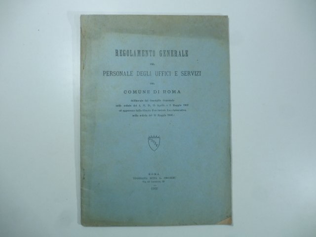 Regolamento generale pel personale degli uffici e servizi del comune di Roma deliberato dal Comune di Roma