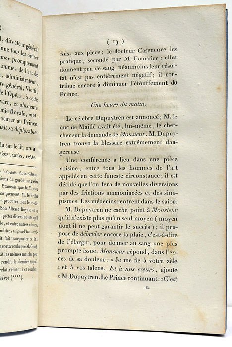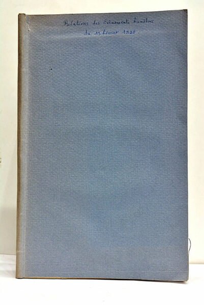 1 feuillet. 68 pages. (20x12,5 Cm). Broché. Couverture postérieure muette. Titre manuscrit sur la première couverture. Petit accroc. Mémoire sur le déroulement chronologique des faits intervenus lors de l'assassinat du Duc de Berry. Petite mouillure claire sur une vingtaine des pages sans atteint au texte. Rousseurs éparses.