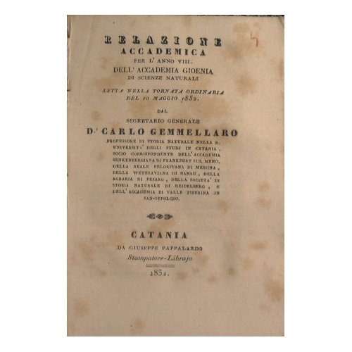 Relazione accademica per l'anno XII dell'Accademia Gioenia, letta nella seduta ordinaria de 5 maggio 1836 dal socio Professore Carlo Gemmellaro