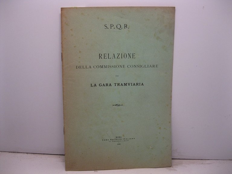 In 8, pp. 15. Br. ed. Relazione dell'approvazione della nuova rete tramviaria romana e proposta di convenzione fra il comune di Roma e la Societa' italiana per le imprese fondiarie.