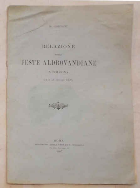 In 8° (cm. 24,5 x 16); pagg. (7); con 1 tavola f.t. (pergamena pel III° Centenario Aldrovandiano); brossura origin.; lievi treacce di etichette e timbro. VG- -. ** Estratto origin. dal bollettino della Società Geologica Italiana.