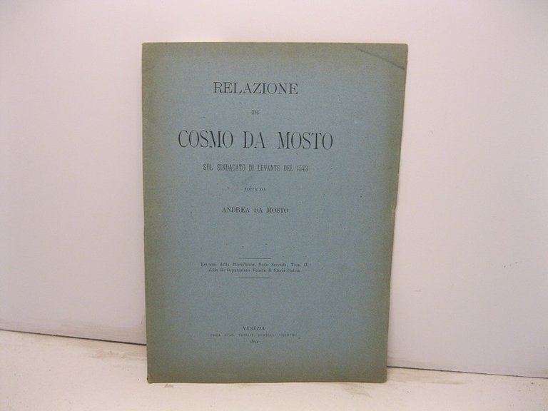 Relazione di Cosmo da Mosto sul sindacato di Levante del 1543 edita da Andrea da Mosto. Estratto dalla Miscellanea, serie seconda, tom. II della R. Deputazione Veneta di Storia Patria