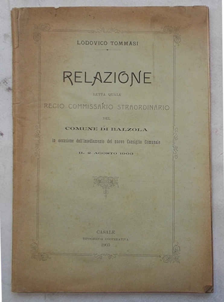 Relazione letta quale commissario straordinario del Comune di Balzola in occasione dell'insediamento del nuovo Consiglio Comunale il 2 agosto 1903.