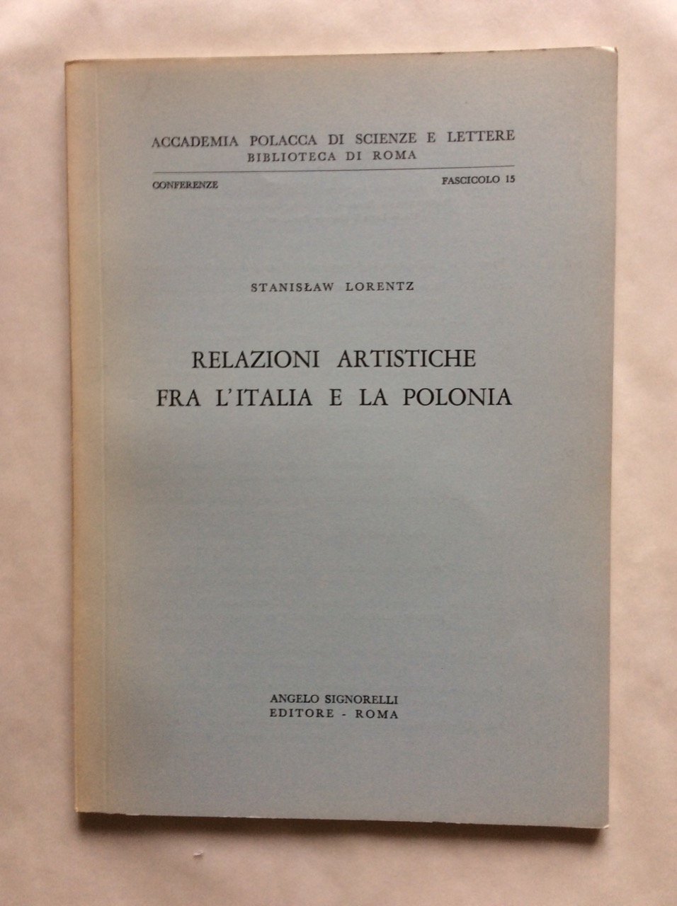 RELAZIONI ARTISTICHE FRA L'ITALIA E LA POLONIA. - Accademia Polacca di Scienze e Lettere. Biblioteca di Roma. Conferenze. Fascicolo 15.