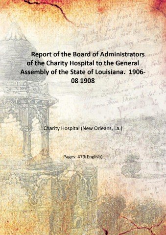 Report of the Board of Administrators of the Charity Hospital to the General Assembly of the State of Louisiana. Volume 1906-08 1908