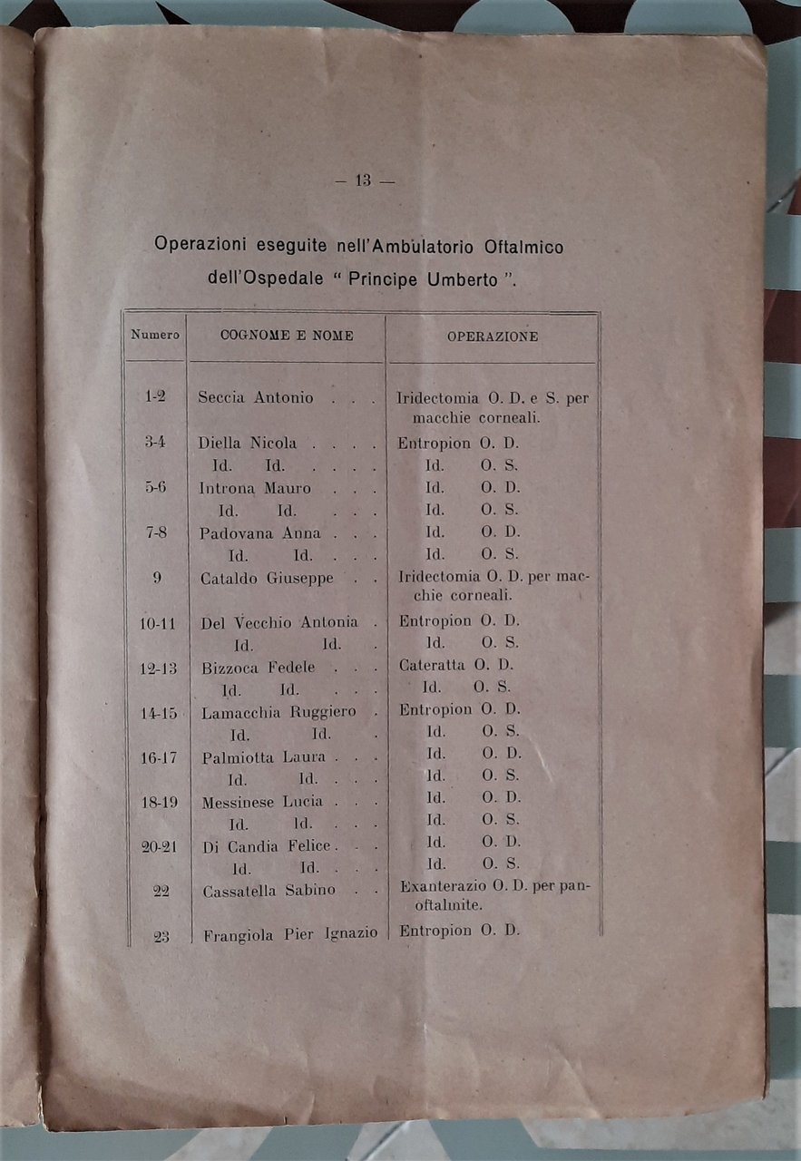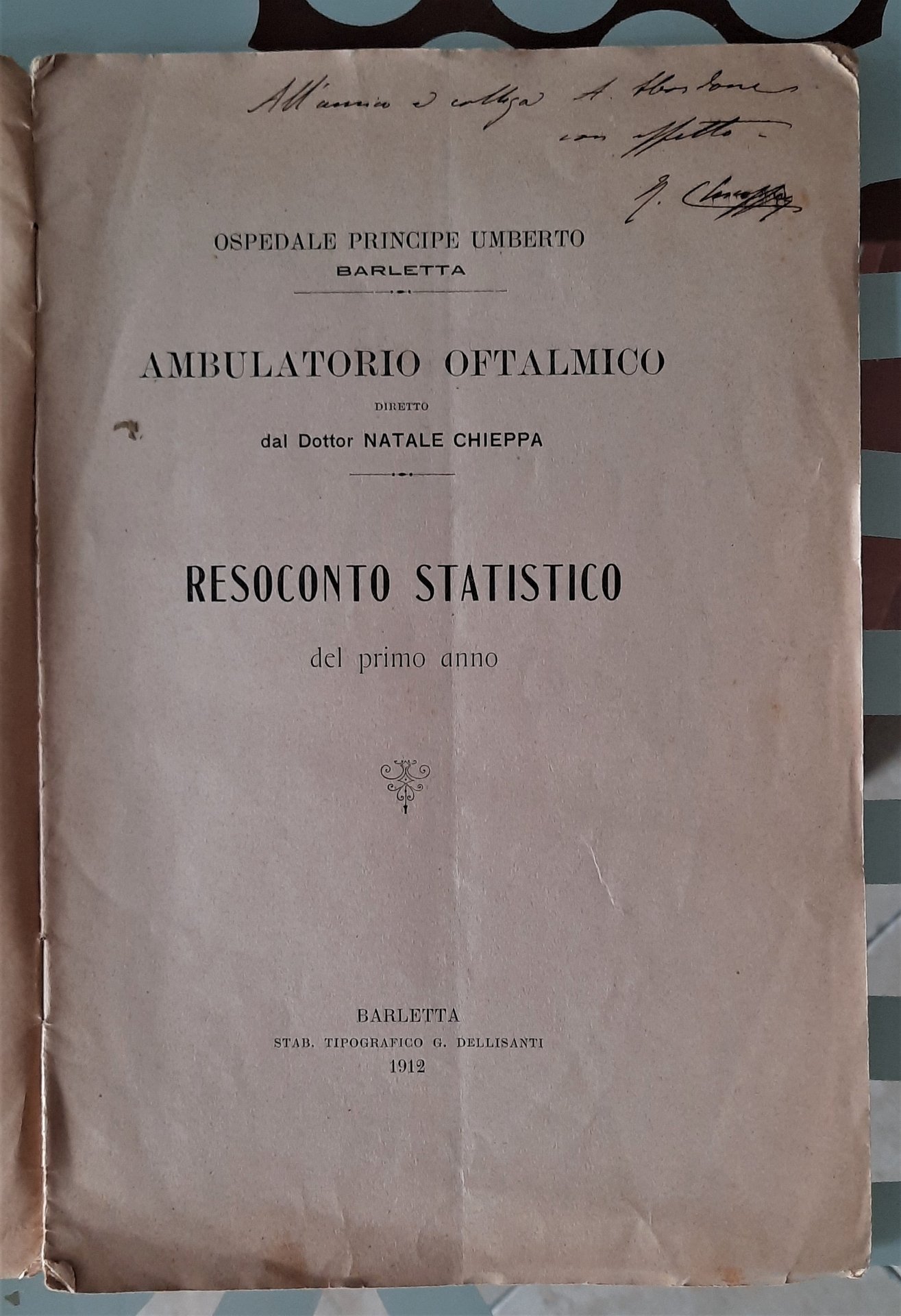 Resoconto statistico del Primo anno dell’Ambulatorio oftalmico di Barletta 1912.