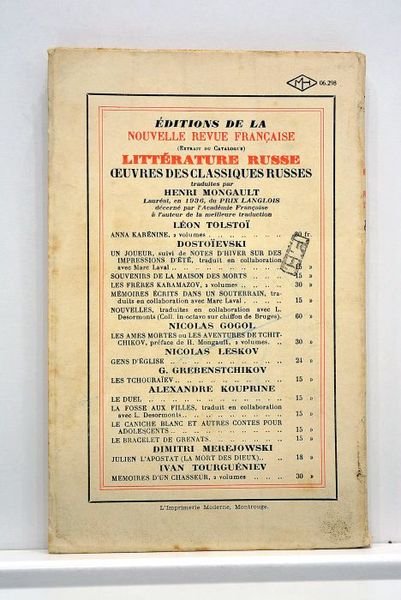125 pages. (19x12cm). Broché. Non rogné. Couverture imprimée. Salissures aux plats. Quelques défauts d'usage. Intérieur légèrment bruni. Bon état. Signature à la page de titre.