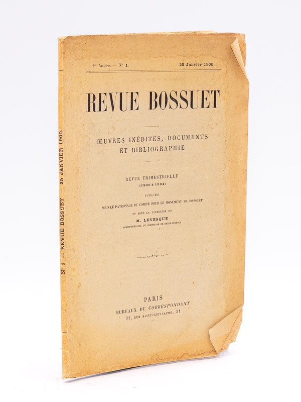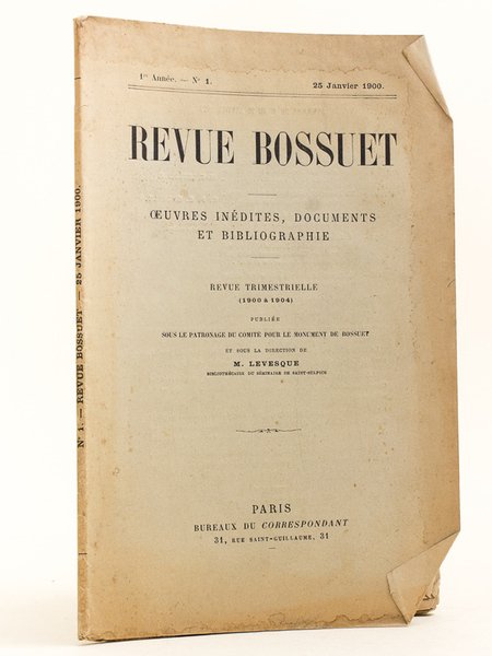 1 vol. in-8 br., Bureaux du Correspondant, Paris, 1900, 64 pp. Le tout premier numéro de la "Revue Bossuet". Etat très satisfaisant