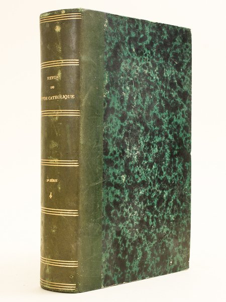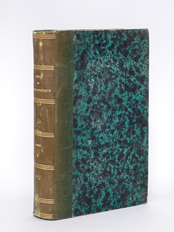 1 vol. in-8 reliure demi-basane verte, Librairie Victor Palmé, Paris, 1879, 953 pp avec une carte dépliante[ Contient notamment : ] Du principe vital ou de la vie dans les êtres créés (Boileau) - Sus aux Jésuites ! Sus à la religion (A. de Lacoste) - L'outrage au Sacré-Coeur (Paul Féval) - Les Vosges (Abbé Chapiat) - Notre-Dame de Montaigu (Charles) - Relation du voyage du roi Louis XVI à Cherbourg en 1786 (Athelstane) - L'Algérie contemporaine : Batna, Lambessa, Biskra et autres villes de la province de Constantine (suite) (Lady Herbert) - Le Maréchal Bugeaud (d'Ideville) - Causeries de Pic de la Mirandole - Les socialistes panthéistes (Loudun) - Le procès de Marpingen (Kuhn) - Mgr de La Tour d'Auvergne Lauraguais. Etat très satisfaisant (ancien cachet d'institution religieuse, étiquette de cote en garde, bon état par ailleurs)