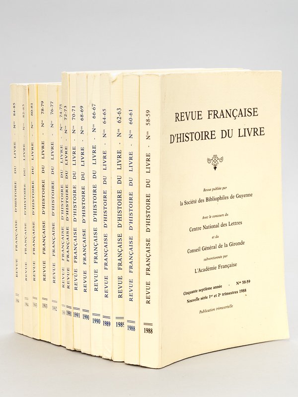 Revue Française d'Histoire du Livre. Année 1988 à 1994 (7 Années Complètes - Tomes XVIII à XXIV - N° 58-59 / 60-61 / 62-63 / 64-65 / 66-67 / 68-69 / 70-71 / 72-73 / 74-75 / 76-77 / 78-79 / 80-81 / 82-83 / 84-85)