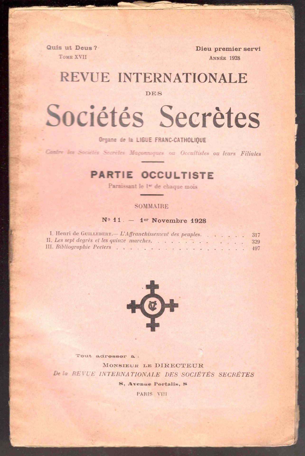 Revue internationale des sociétés secrètes. Tome XVIII, année 1928, n° 11 - Partie occultiste