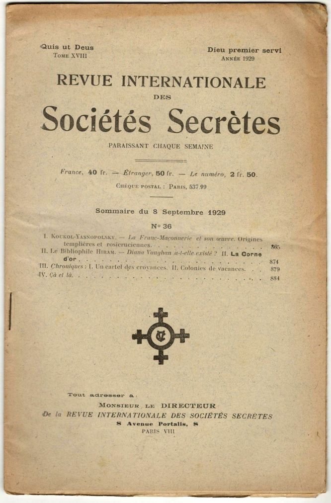 Revue internationale des sociétés secrètes. Tome XVIII, année 1929, n° 36