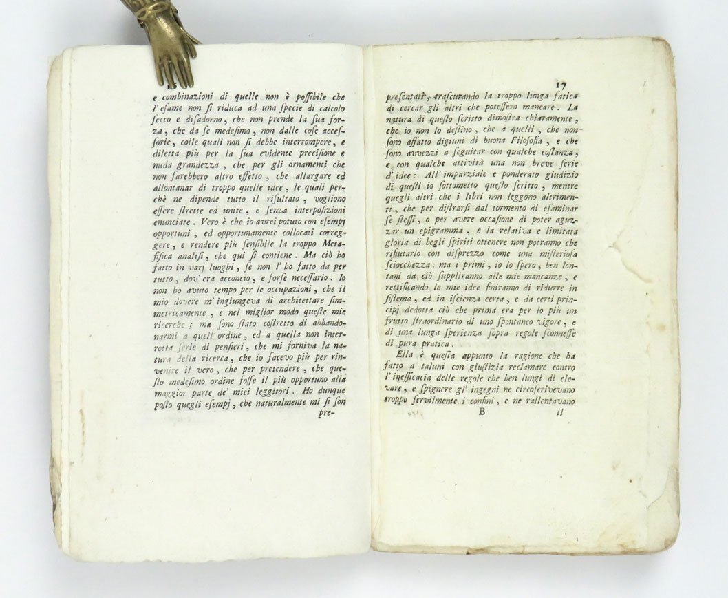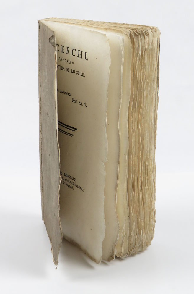 LIBROEdizione originale.Eccezionale esemplare in barbe (209 x 133 mm) con testimoni e fogli diseguali, freschissimo e pulito, nella brossura officinale (rinforzo antico al dorso in carta simile); l’esemplare proviene dalla storica dismissione dei doppi della Biblioteca Trivulziana di Milano, di cui reca ancora sbiaditi i timbri alle prime tre carte (A1-3).Pubblicata in un’unica tiratura di cui non è nota l’entità, nel settembre 1770. La bibliografia redatta da Luigi Firpo localizzava l’opera in sole sei biblioteche pubbliche italiane, cui se ne aggiungono circa altrettante nel mondo.Firpo, Ediz. naz. delle Opere di Cesare Beccaria, vol. II p. 512