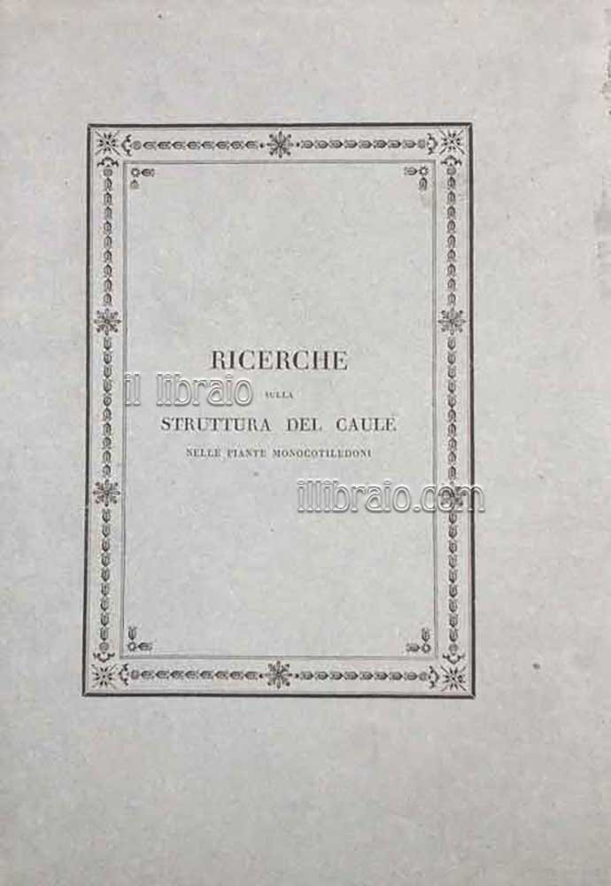 in 4°; pp. (8), 112 + 10 tavv. calcogr. (ill. bn.); leg. orig. in cartoncino pesante (Saccardo, 109 - Pritzel, 212). L'aut. dott. in medicina e chirurgia, socio dell'Accademia di Scienze Lettere ed Arti, e assistente alla Cattedra di Botanica dell'Università di Padova (ottima copia ancora intonsa)
