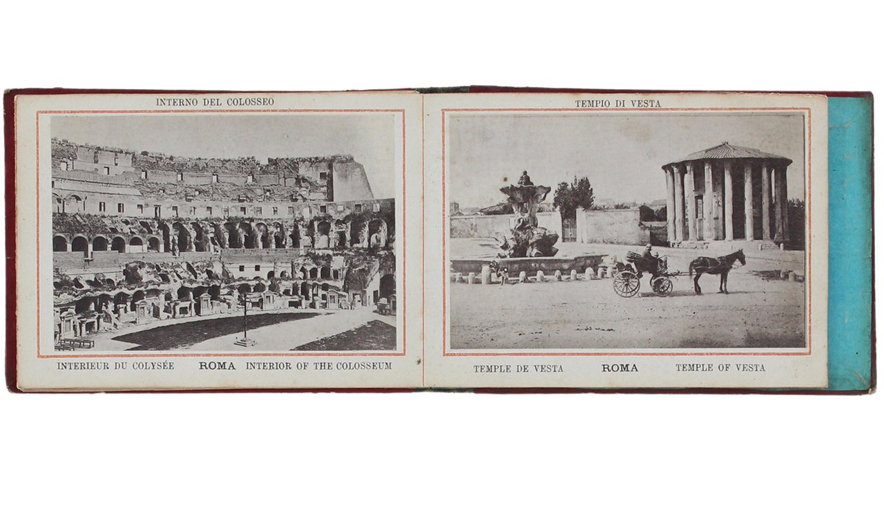 (Codice TU/1002) In 8° 32 tavv. Album a fisarmonica, 12 vedute fotografiche di cm 11x8, didascalie in francese, inglese, italiano. Cartoncino editoriale e titolo oro, buono stato. ~~~ SPEDIZIONE IN ITALIA SEMPRE TRACCIATA