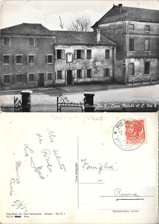 Riese Pio X. Casa Natale di S. Pio X . Viaggiata 1954