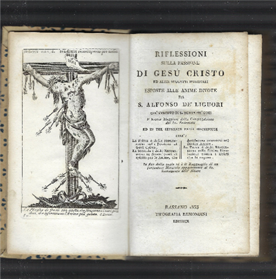 Riflessioni In Tre Separate; Parti Distribuite .In Fine Un Ragguaglio Di Un Portentoso Miracolo Appartenente Al Ss. Sacramento Dell'altare. Incisione Del Cristo In Croce In Antiporta.Legatura In Pergamena E Cartone.Buono Stato. In Magazzino Abbiamo Anche Un'altra Copia Del 1820 Che Presenta Segni Di Tarli E Legatura Allentata Ad Un Prezzo Inferiore .