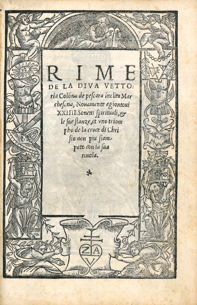 Rime de la Diva Vettoria Colonna de Pescara inclita Marchesana, Novamente agiuntovi XXIIII sonetti spirituali, et le sue stanze, et uno triompho de la croce di Christo non più stampato con la sua tavola