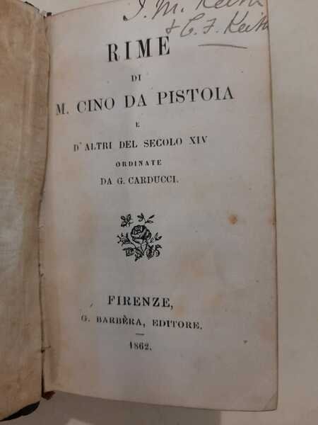 Rime di M. Cino da Pistoia e d'altri del secolo XIV ordinata da G. Carducci