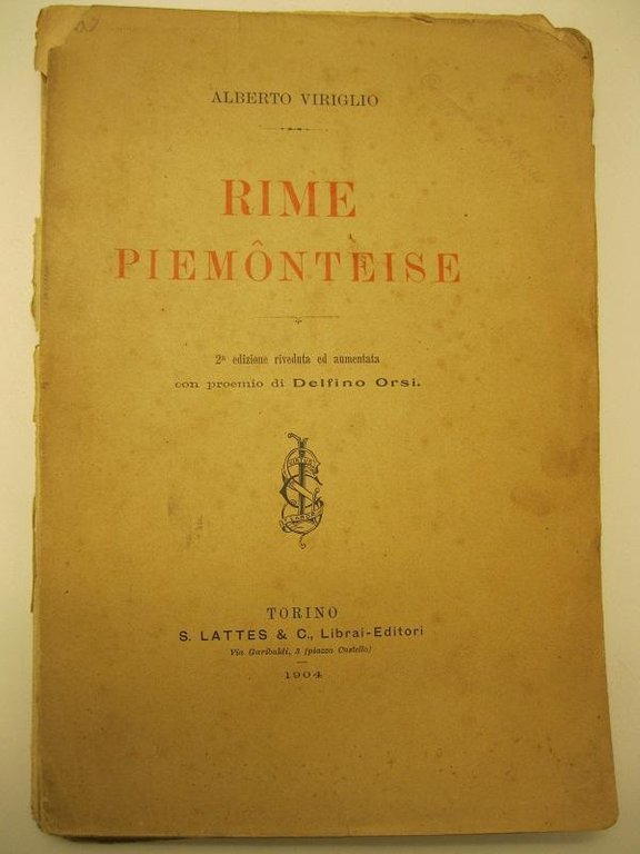 Rime piemonteise 2o edizione riveduta ed aumentata con proemio di Delfino Orsi