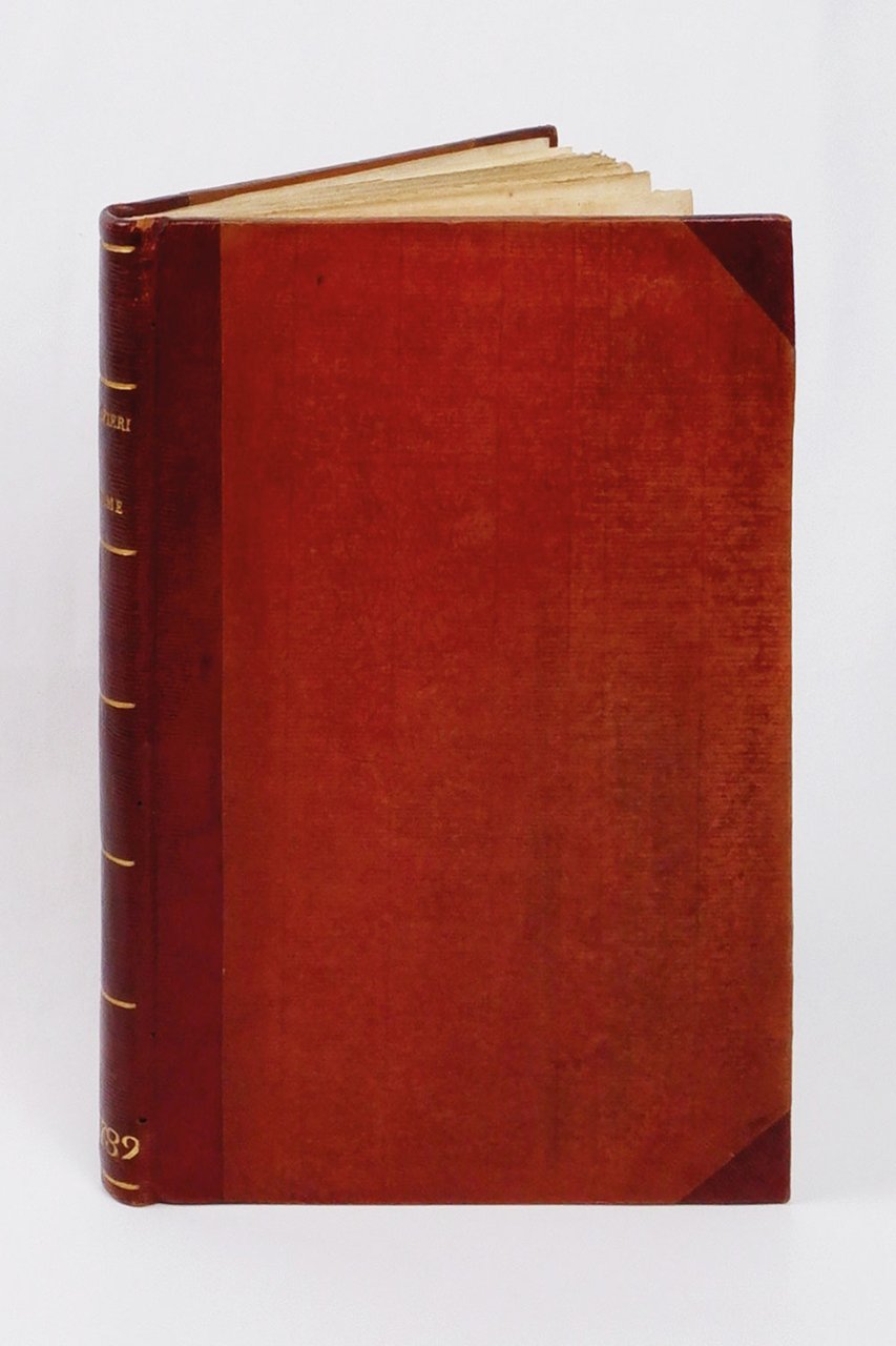 - legatura ottocentesca in mezzo marocchino rosso con angoli, piatti rossi, al dorso filetti e titoli oro,