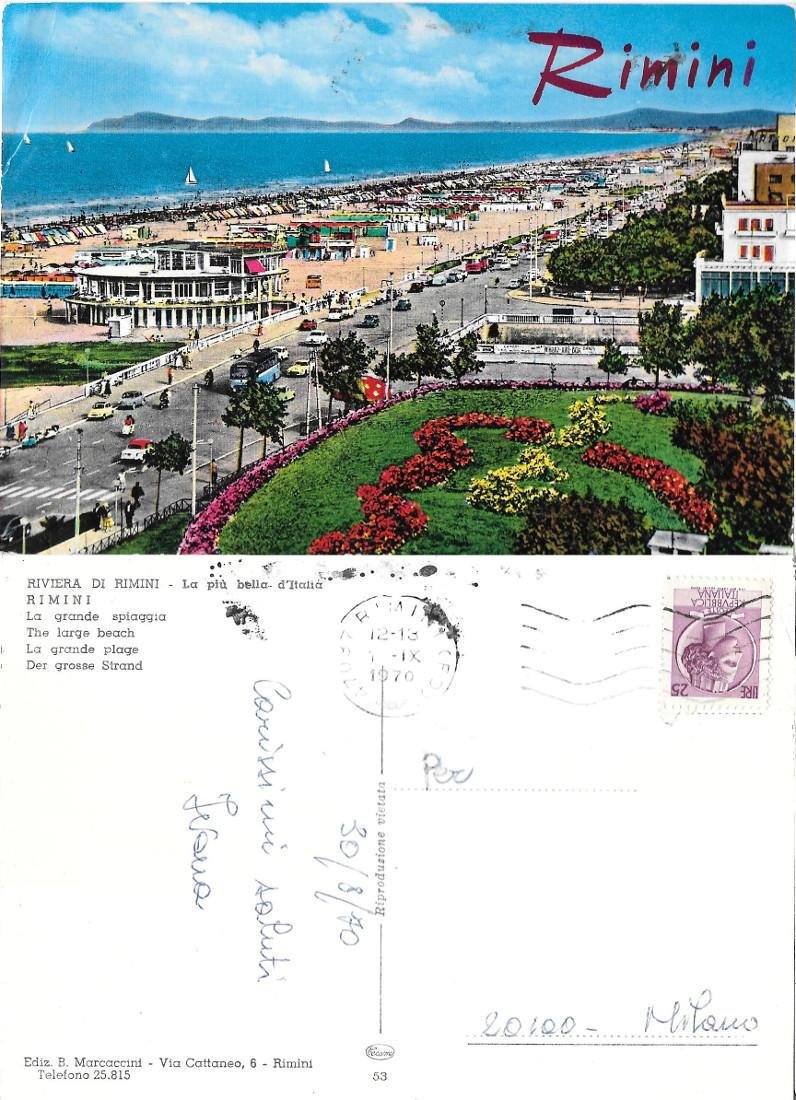 Rimini. La grande spiaggia. Viaggiata 1970