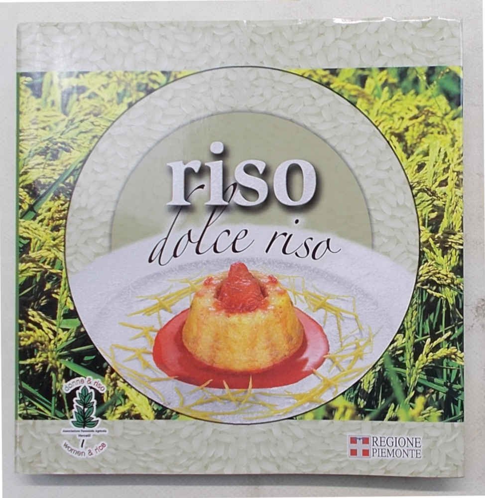In 8° quadrato (cm. 23 x 22,5); pagg. 178; con tavole a colori n.t. tratte dai dipinti della serie "Rapsodia della Risaia" di Enzo Gazzone; cartonatura originale muta con sovracopertina a colori. VG. ** Con invio autografo della presidente dell'Associazione "Donne & Riso". Oltre cinquanta ricette di dolci, tutte a base di riso. Testi in italiano e in inglese.