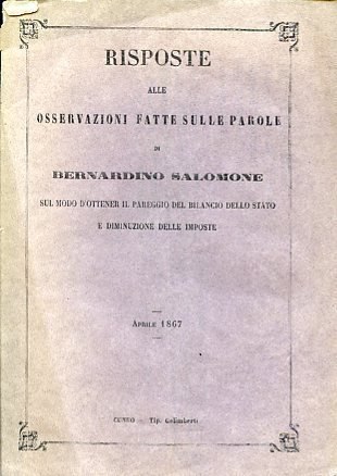 Risposta alle osservazioni fatte sulle parole di Bernardino Salomone sul modo d'ottenere il pareggio del bilancio dello stato e diminuzione delle imposte