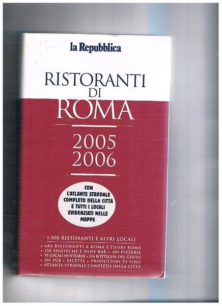 Ristoranti di Roma 2005-2006 con l'atlante stradale completo della città e tutti i locali evidenziati nelle mappe. 1300 ristoranti aRoma , enoteche wine bar, pizzerie ecc.
